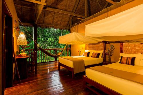 In this luxe Amazon resort, you’ll stay in spacious, stilted bungalows, with multiple rooms to spread out in.